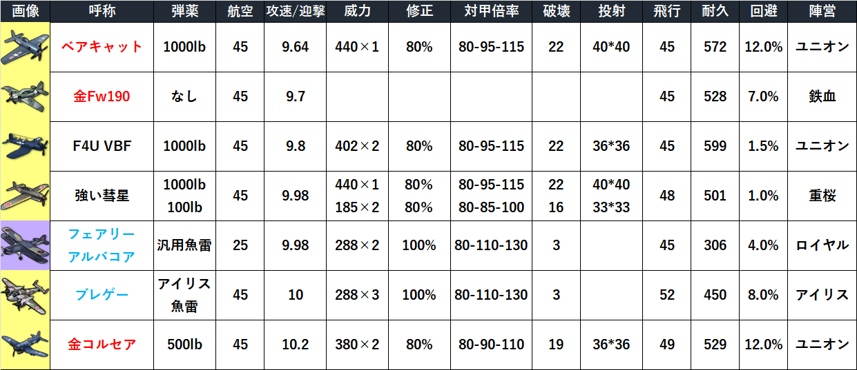また、白龍と空母天城のように、爆撃機か攻撃機から選ぶタイプはVBFが最速となる。