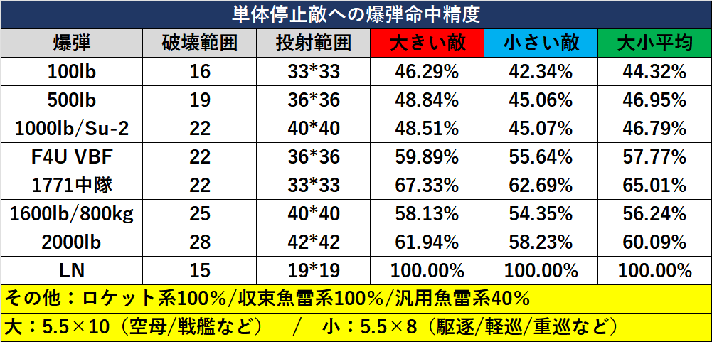 この機体の爆弾が戦艦・航空戦艦に命中時、24%で装甲破壊を付与する。