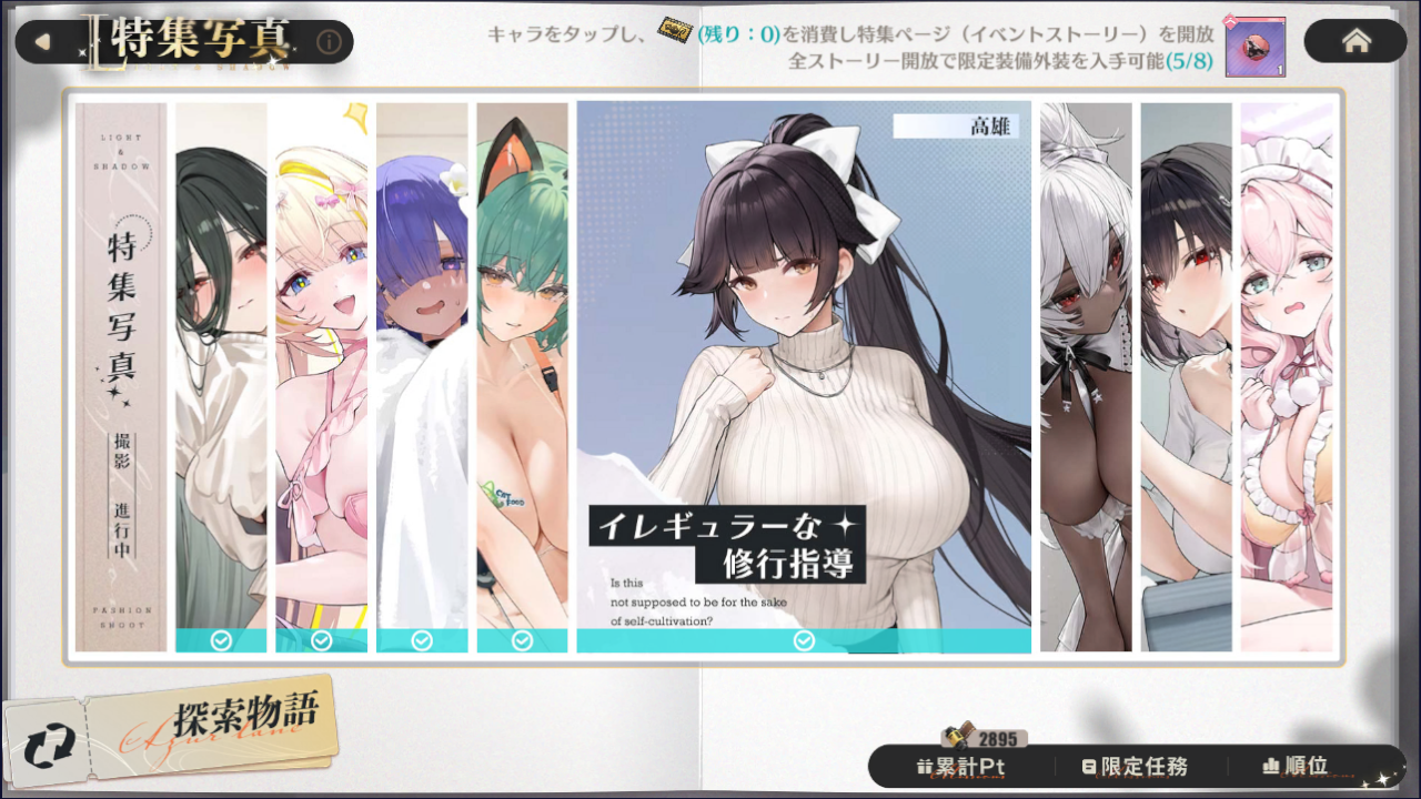 試着貸出対象はフランチェスコ・カラッチョロ、高雄、アラバマ。キャラを所持していれば一定期間だけ無料でシコり放題です。ありがたやありがたや!