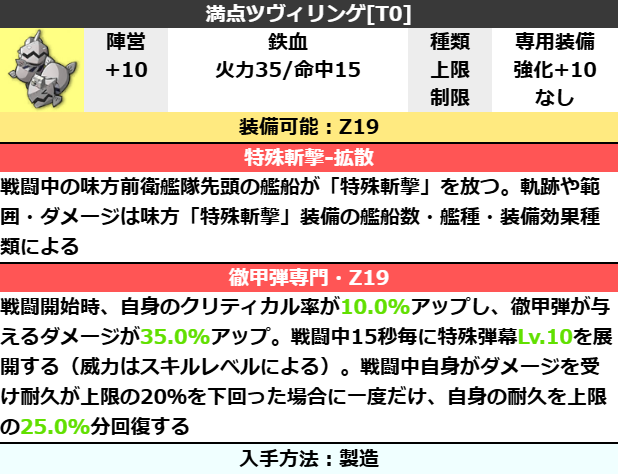 Z19| 耐久 | 2082 | 装甲 | 軽装甲 | 装填 | 204 |