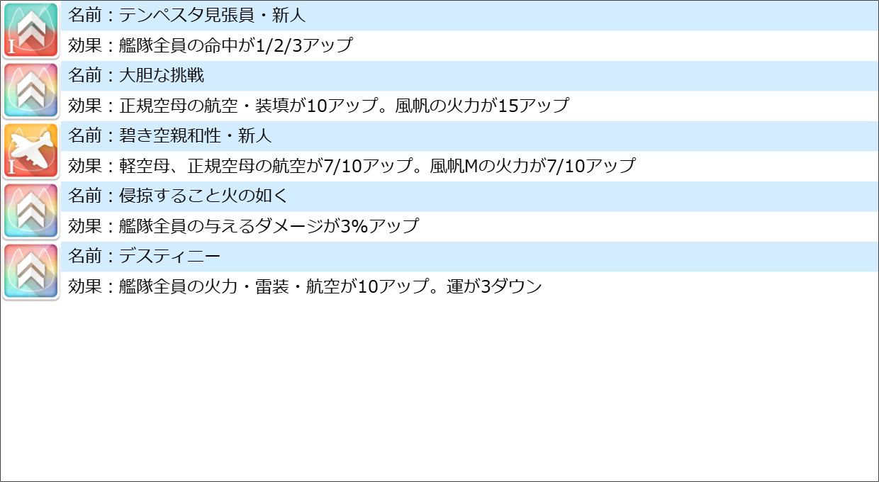 効果1:主力艦隊と交戦時、戦艦・空母・風帆Mの命中上昇。
