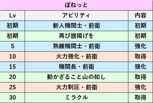 限定オフニャのアビリティはレベルアップで強化・取得する順番が決まっています。