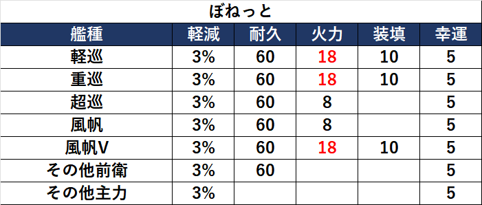 セ作では参謀配置時、軽巡・重巡・超巡・風帆Vの回避上昇。