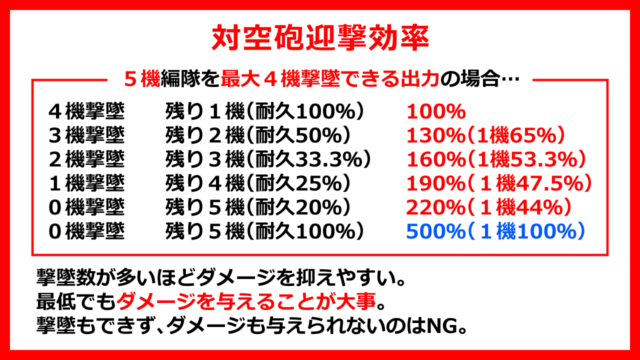 他にも対空射撃の回転率を上げ、攻撃回数でダメージを稼ぐ方法もある。基本的に1回攻撃よりも2回攻撃のほうが合計ダメージは高い。