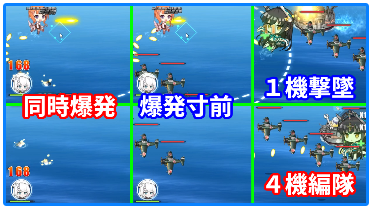 編隊の先頭が左端に到達すると、その編隊に所属する航空機は全て爆発して主力にダメージを与える。