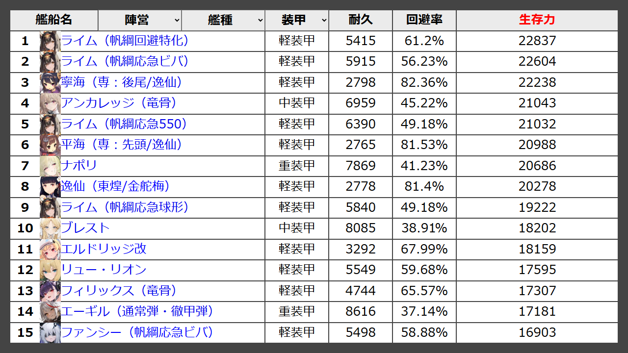 対空や装甲を無視して考えると、ライムの生存力は単体で前衛最強クラスです。まさか中華トリオを上回るとは思いませんでした。