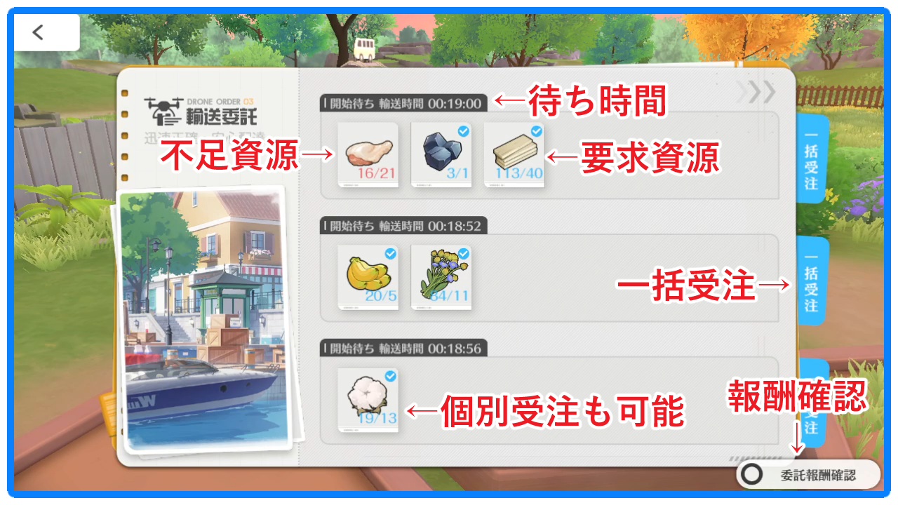 課金しない限り、好感度上昇アイテムは離島経営でのみ入手可能。