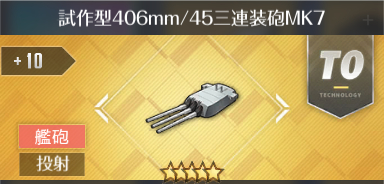 戦艦主砲「試作型406mm/45三連装砲MK7[T0]」のステータス(強化+10)。