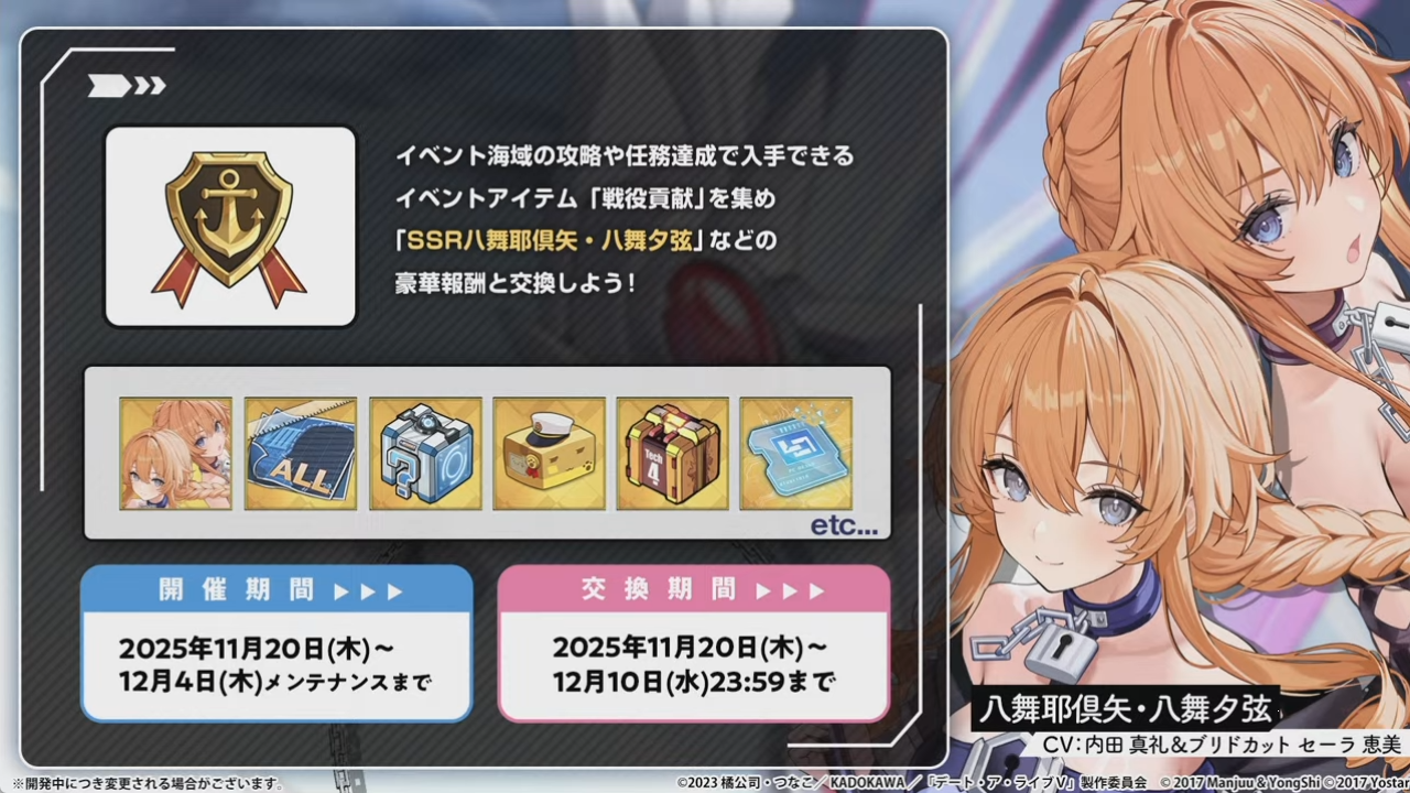 アズールレーンと「デート・ア・ライブ」のコラボ情報が生放送で公開されました。今回は生放送で公開されたゲーム内最新情報を簡単にまとめています。ちなみにコラボキャラには全員スリーサイズが設定されているようなので要チェックです。