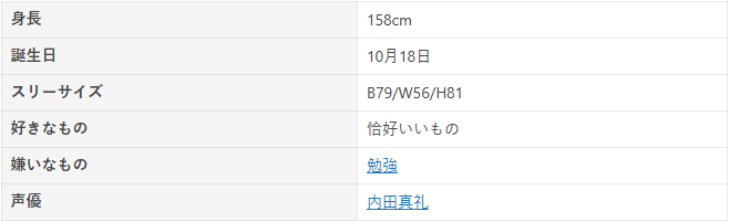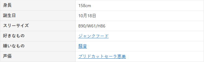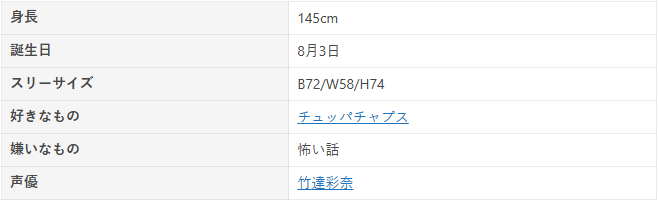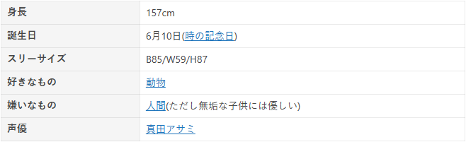 担当声優は竹達彩奈さん。「ソードアート・オンライン」や「けいおん」など、様々な作品で活躍されています。