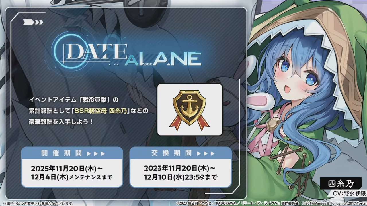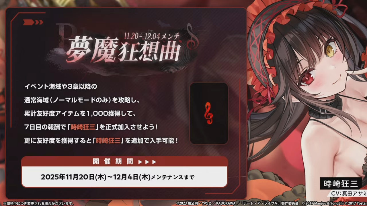 「デート・ア・ライブ」コラボは11月20日から開催されます。