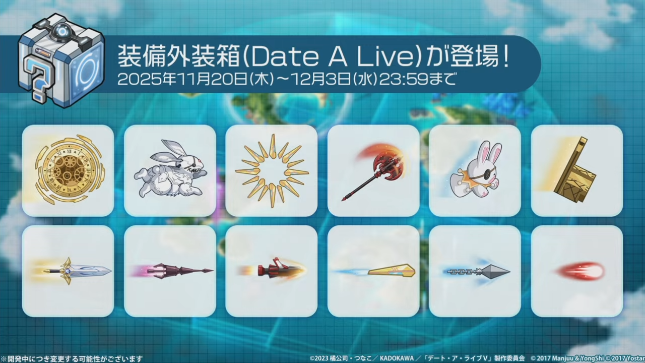 新しい装備外装箱(デート・ア・ライブ)が実装。