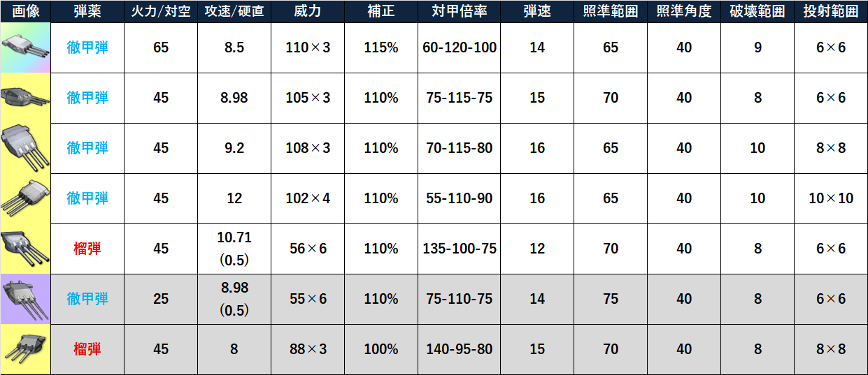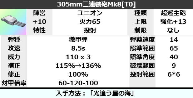 305mm三連装砲Mk8[T0]」は超巡に装備可能な投射徹甲弾です。