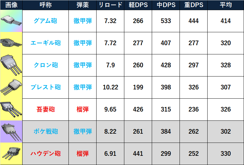 攻速・威力・対甲倍率はエーギル砲の上位。対重装甲性能の差が大きい