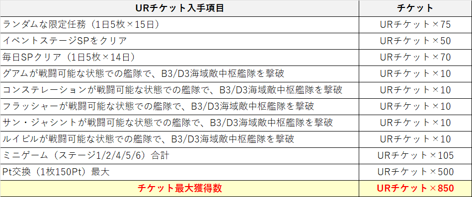 初開催時のURチケット入手方法と入手量はこんな感じ。