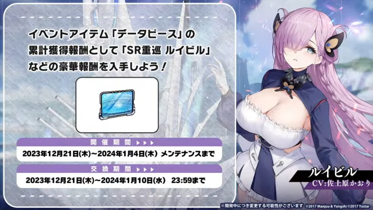 今後の予定として、1月末は春節イベント、2月末は新規URイベント、3月はソユーズ復刻が予想されます。
