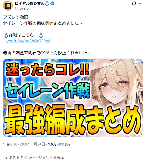 2026年1月25日にセ作編成に関する動画・記事を投稿しました。