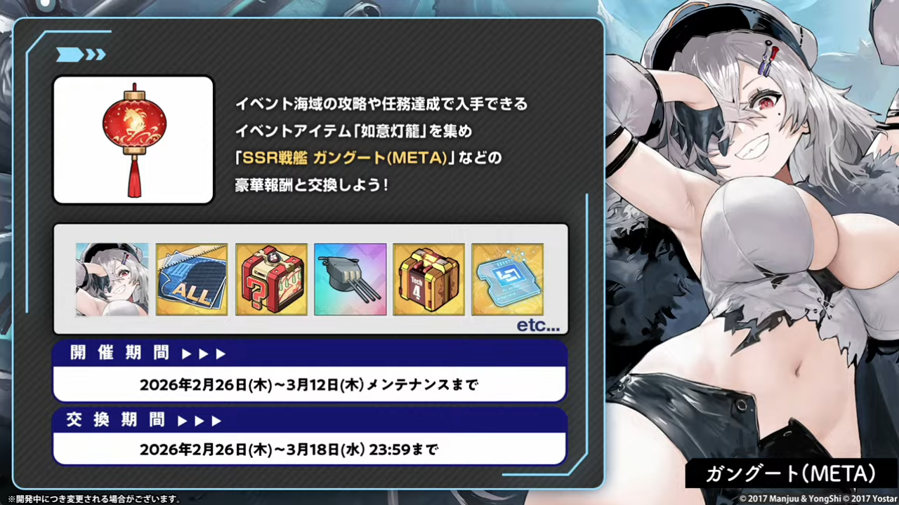 2026年2月20日にアズレン生放送が公開されました。ゲーム内最新情報を簡単にまとめたので、まだ見ていない人、おさらいしたい人は一緒に見ていきましょう。