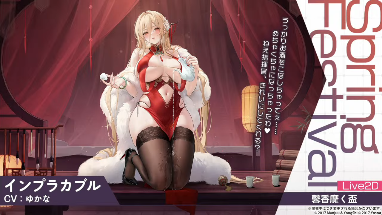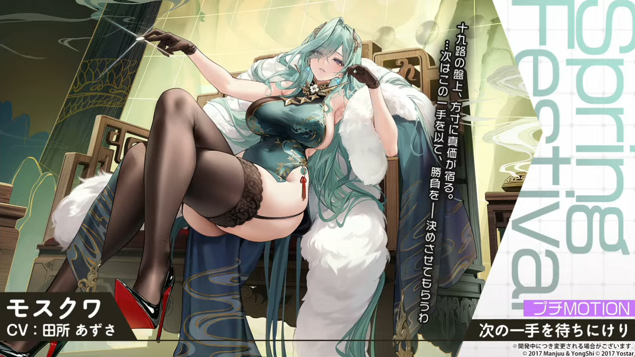 モスクワの着せ替え。プチモーション仕様で実装。アズレンでよく見る、ふとももや足をを強調したポーズ。アズレンのせいで、中国の春節はスケベな行事と思っている日本人は多いはず。