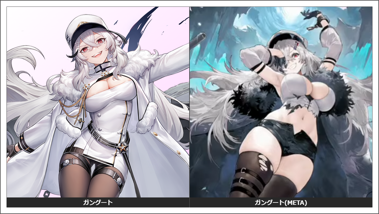 本家ガングートと比べると、METAのほうは露出が多い。おなか丸出し、ふとももむっちり、おっぱいばいーん。