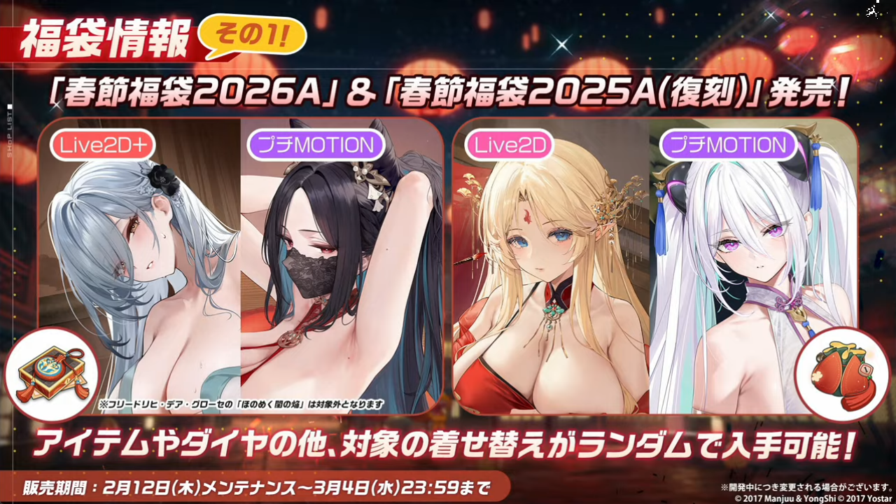 ちなみに前回のアップデートで登場した2種類の福袋も販売中です。買う福袋を間違えないようにしましょう。