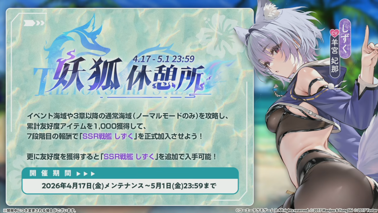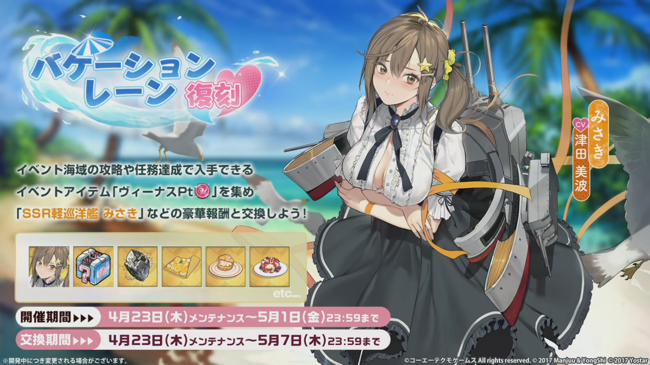 4月17日金曜日からコラボイベントが開催されます。新規コラボ艦船は全部で6隻。全てSSRということで期待が高まります。