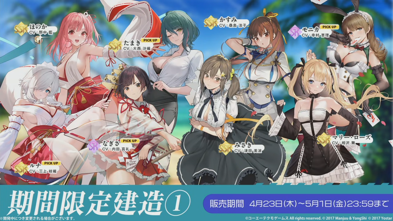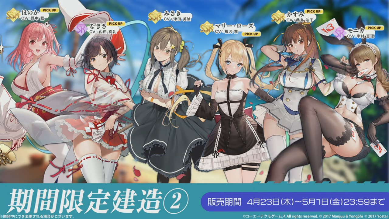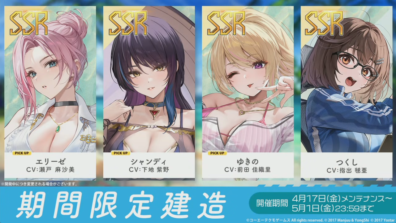 期間限定建造で欲しいのは「エリーゼ」、「シャンディ」、「ゆきの」です。