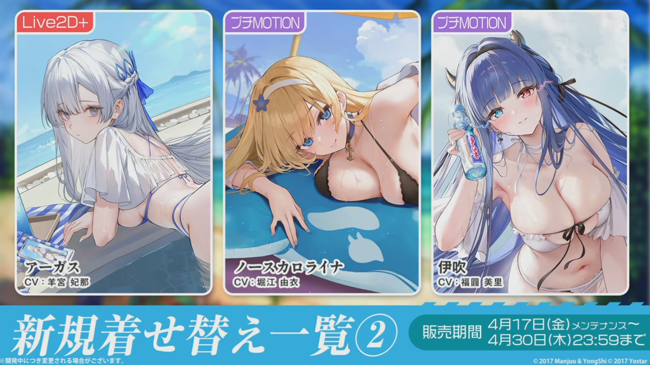 アズレン艦船のほうはアーガスのみL2D+で実装。ノースカロライナと伊吹はプチモーション仕様。