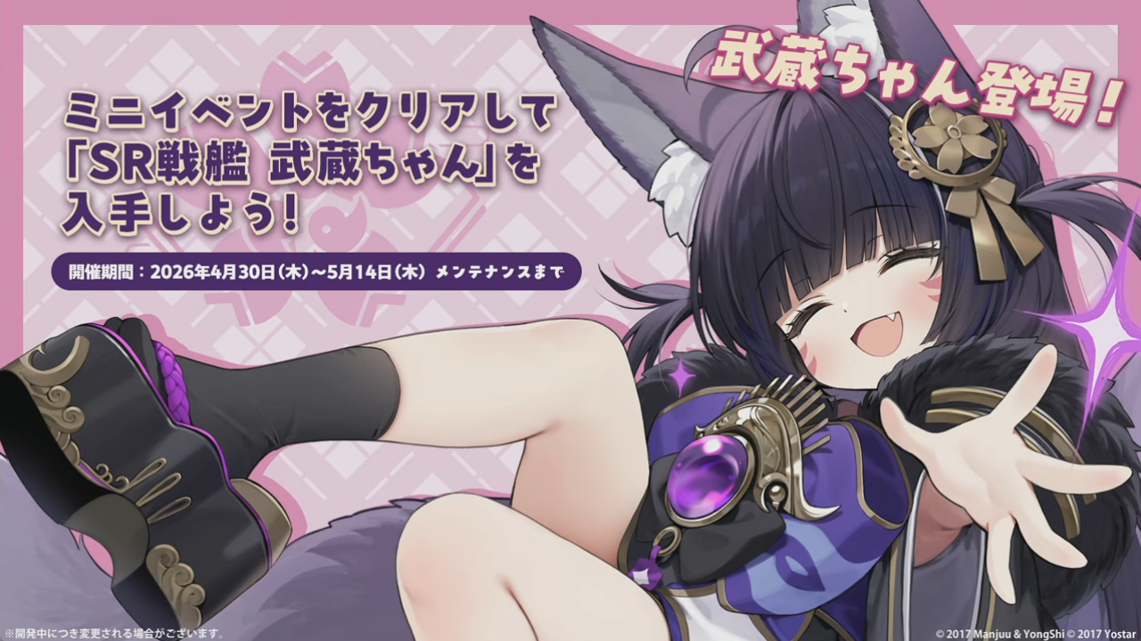 ミニイベントでSR戦艦「武蔵ちゃん」が実装されます。