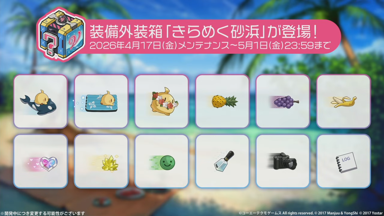 新しいコラボ装備外装箱「きらめく砂浜」が登場。