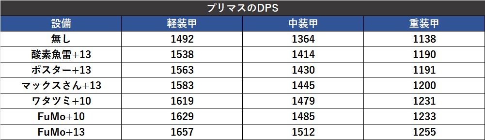 これが砲撃特化のプリマスだと、FuMOの重装甲DPSのほうが高くなるので、使い分けはかなり重要です。