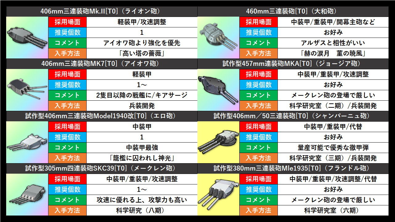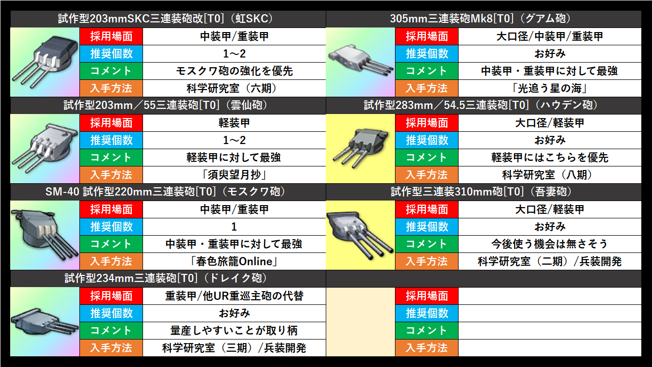 余燼戦で使われる重巡主砲と大口径主砲はこちら。