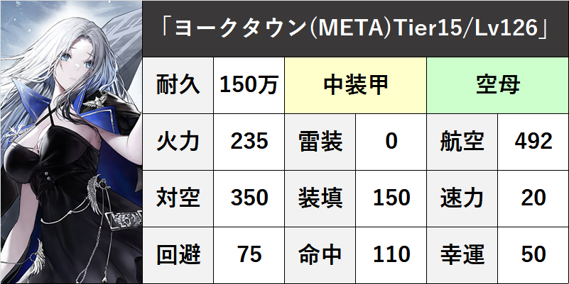 ヨークタウン(META)は耐久150万の中装甲空母です。
